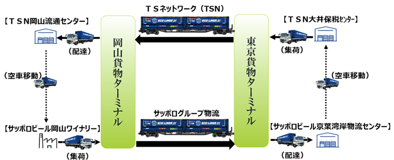 サッポログループ、TSネットワーク、日本通運の3社が連携し、岡山〜千葉、東京~岡山間における鉄道を活用した共同輸送を開始